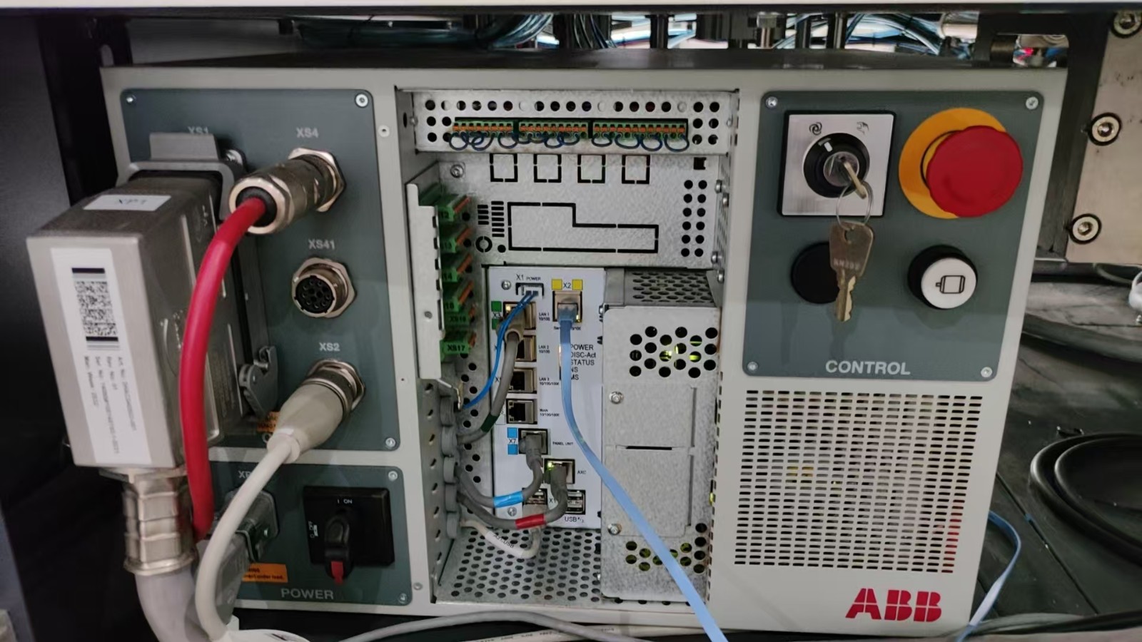 EtherNet/IP 网络接口:控制柜背面的 RJ45 网口(标记为 “EtherNet” 或 “LAN”),用于连接 RobotStudio、PLC 或其他设备,直接插入网线即可(需配置 IP 地址)。