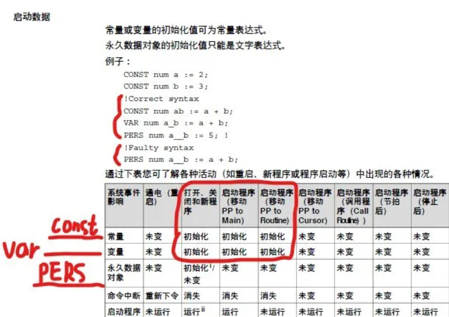 在 ABB 机器人的 Rapid 程序中使用VAR、PERS和CONST时,需注意以下细节,以避免逻辑错误、内存浪费或系统异常: