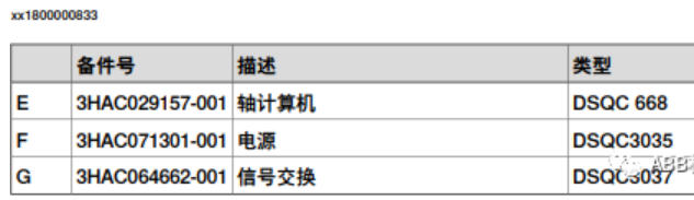 电源单元 | Power unit A1 | 目前有三款,分别是标准的,IRB14050和CRB15000使用; 等同于IRC5的电源滤波器,驱动的整流器和接触器K42和K43 |