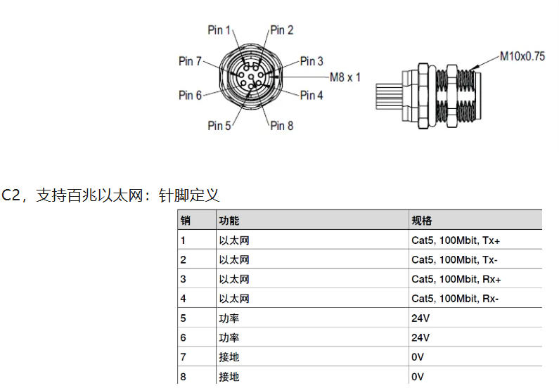 机器人侧接头均为母头:M8,A 码,8 极,母头 (IEC 0.4 Nm 61076-2-104)。 用户需要自行购买对应的M8 公头