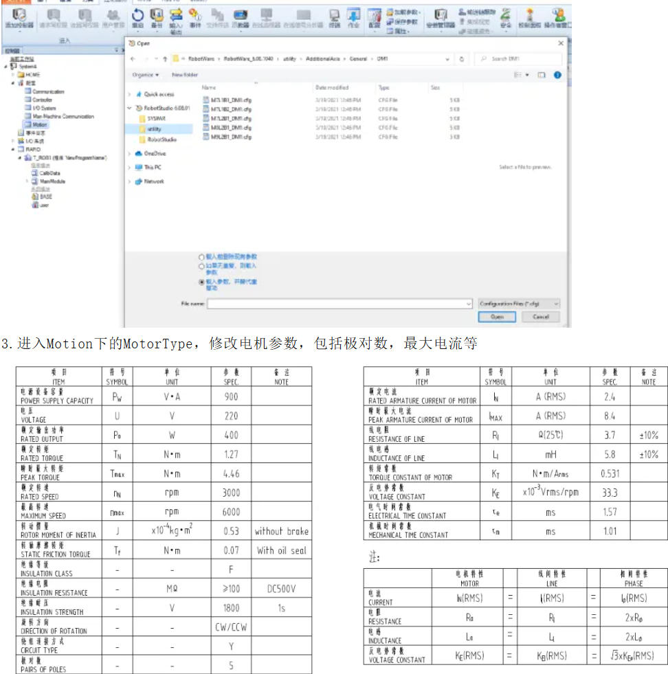 2.在配置第三方外部轴电机时,在直接导入外轴模板文件后,需要对MotorType参数根据电机实际参数调整。