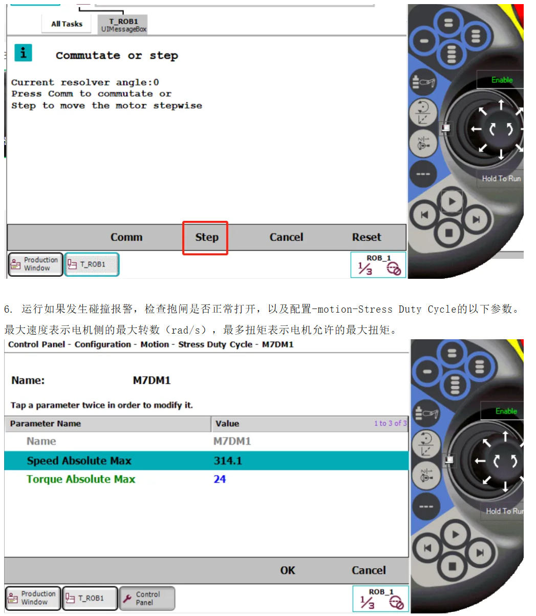 5.选择step,后续点击step+,查看显示度数是否增加。如果显示度数减小,调整uvw相序,如果飞车,调整uvw相序。
